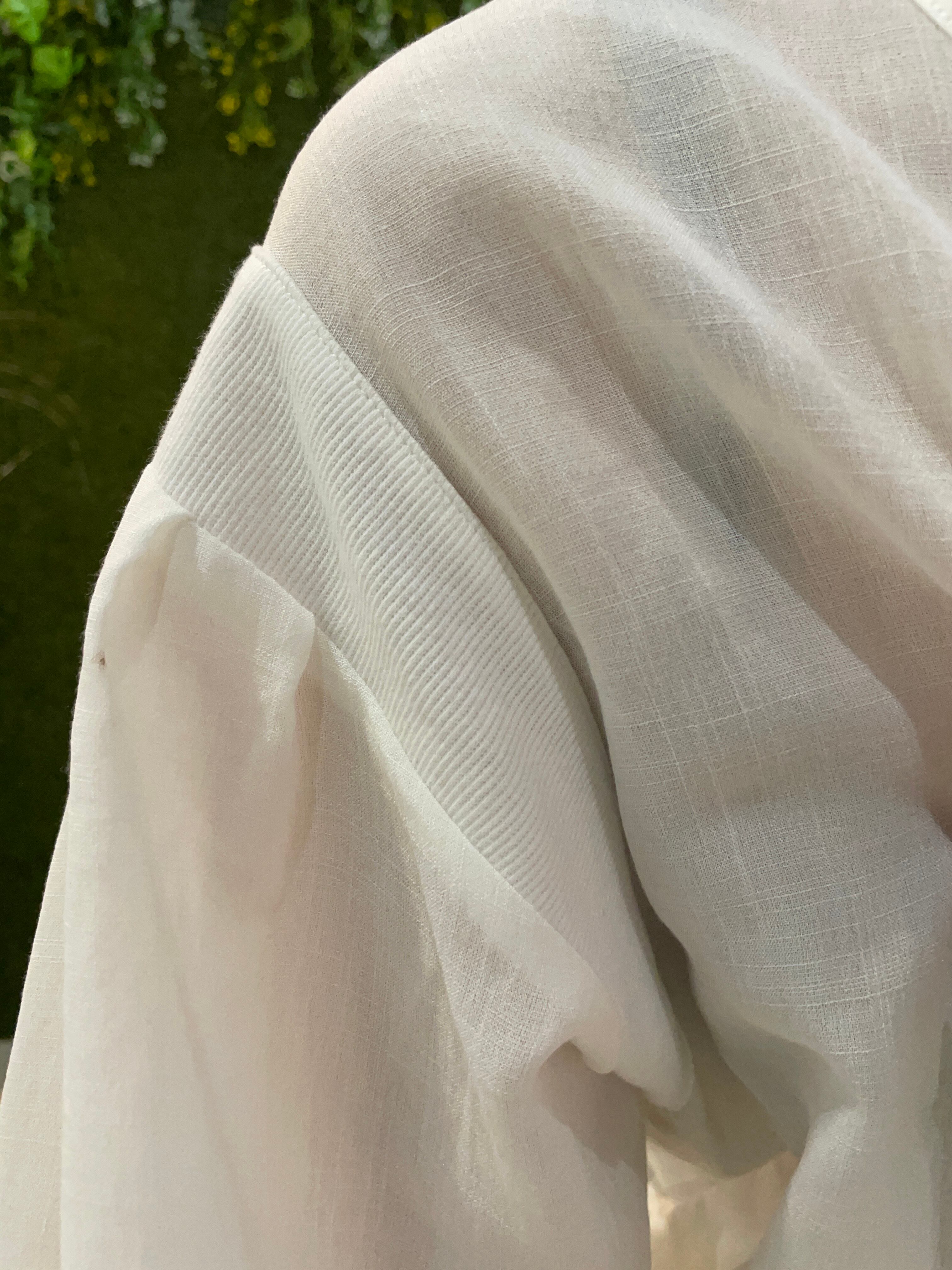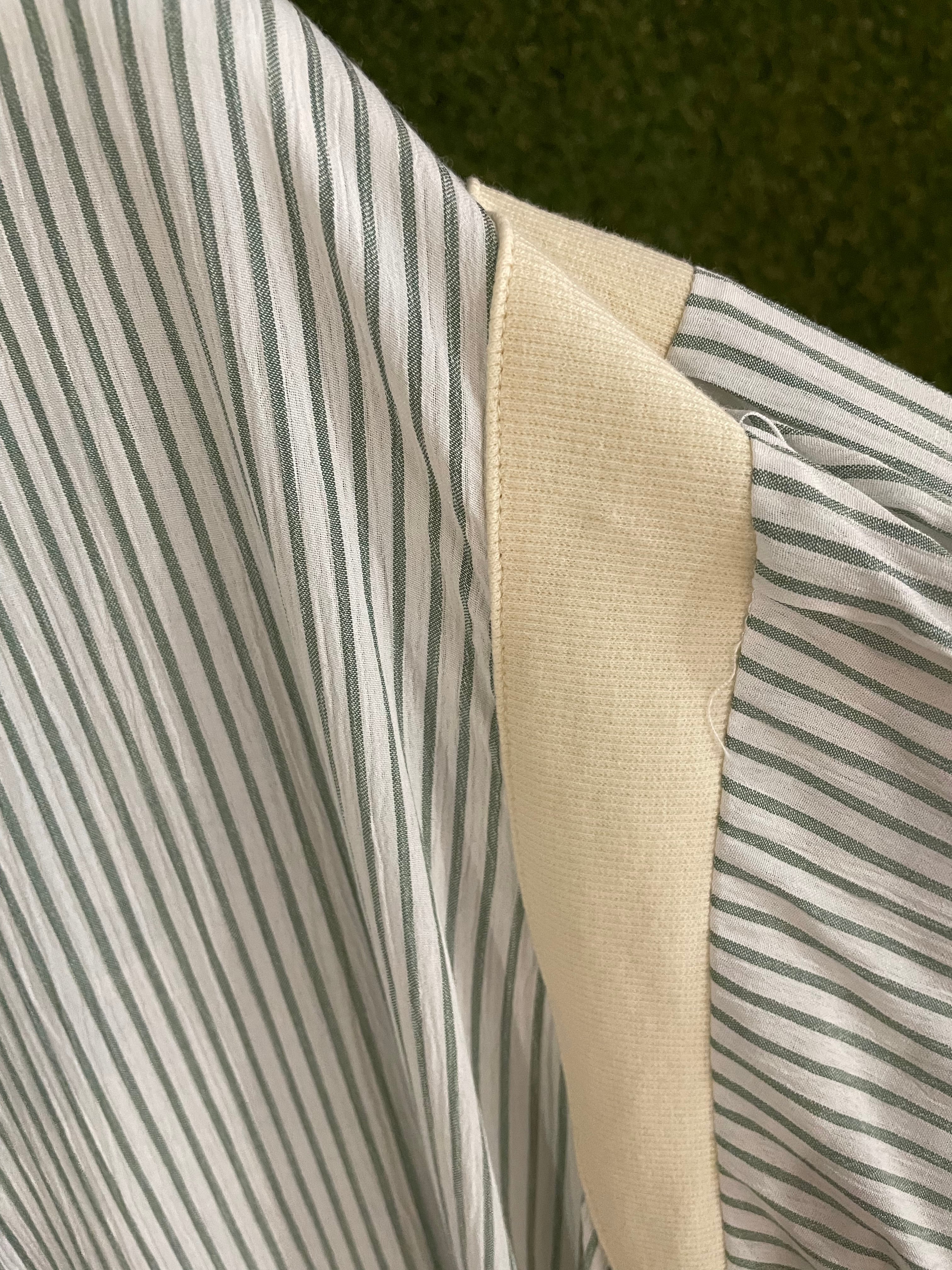 袖と肩の部分がリブで切替になっているのもポイントとして可愛いのはもちろん、夏の羽織として袖を上げやすいのもポイントです。