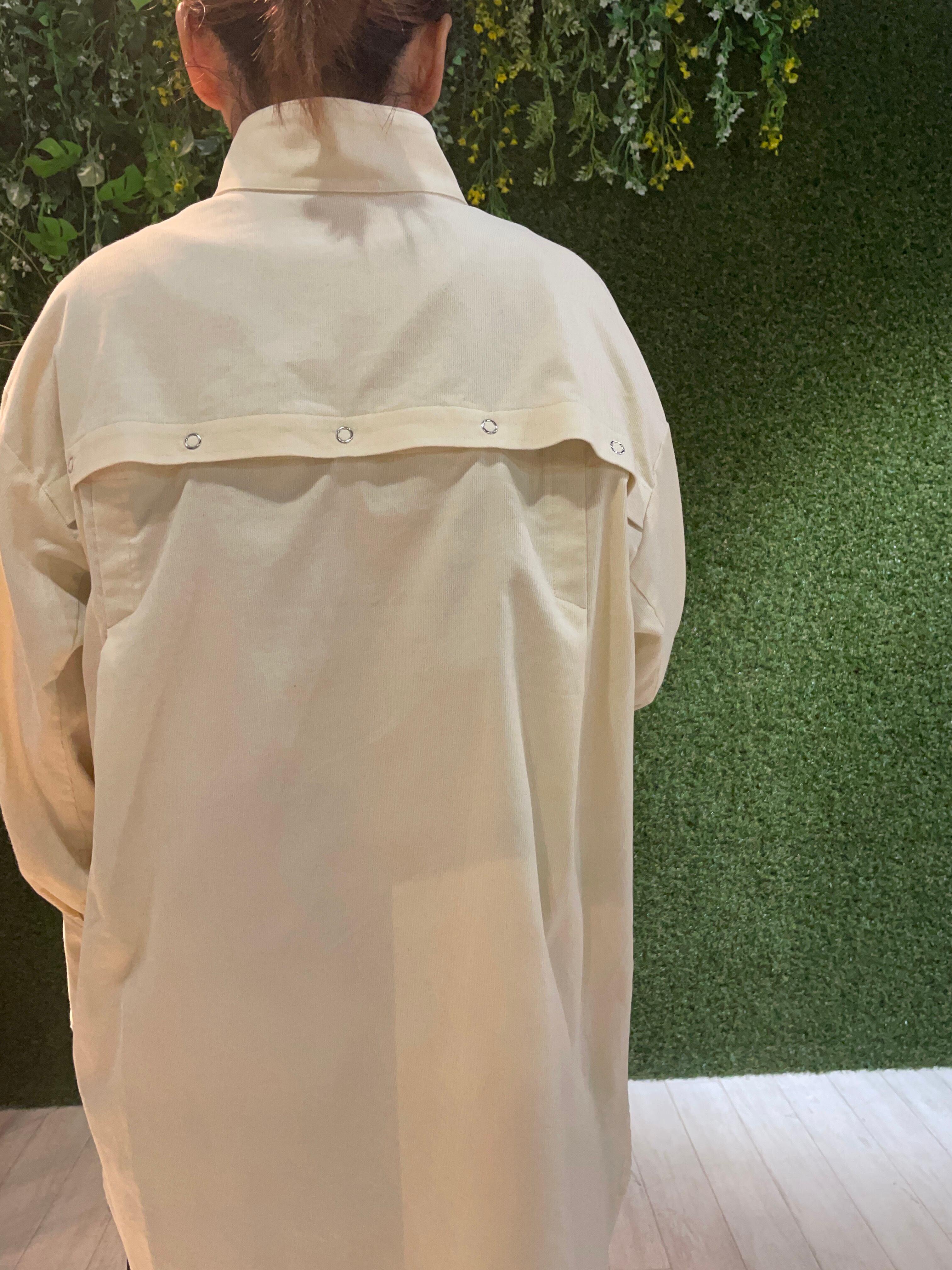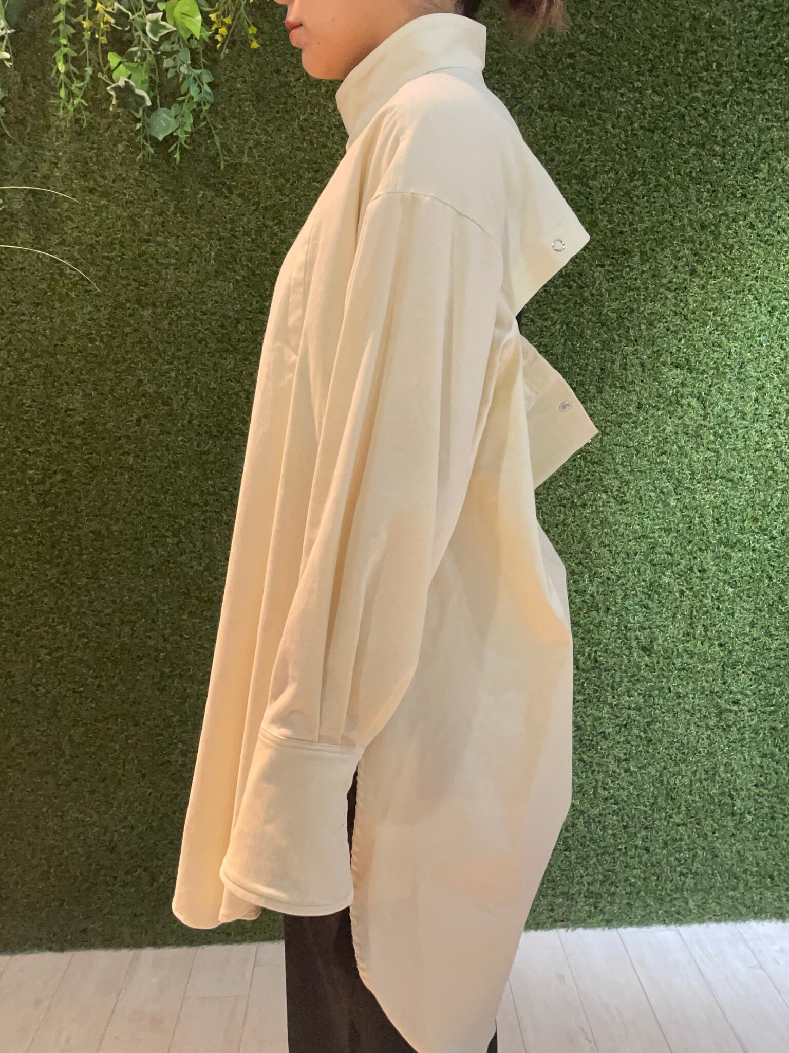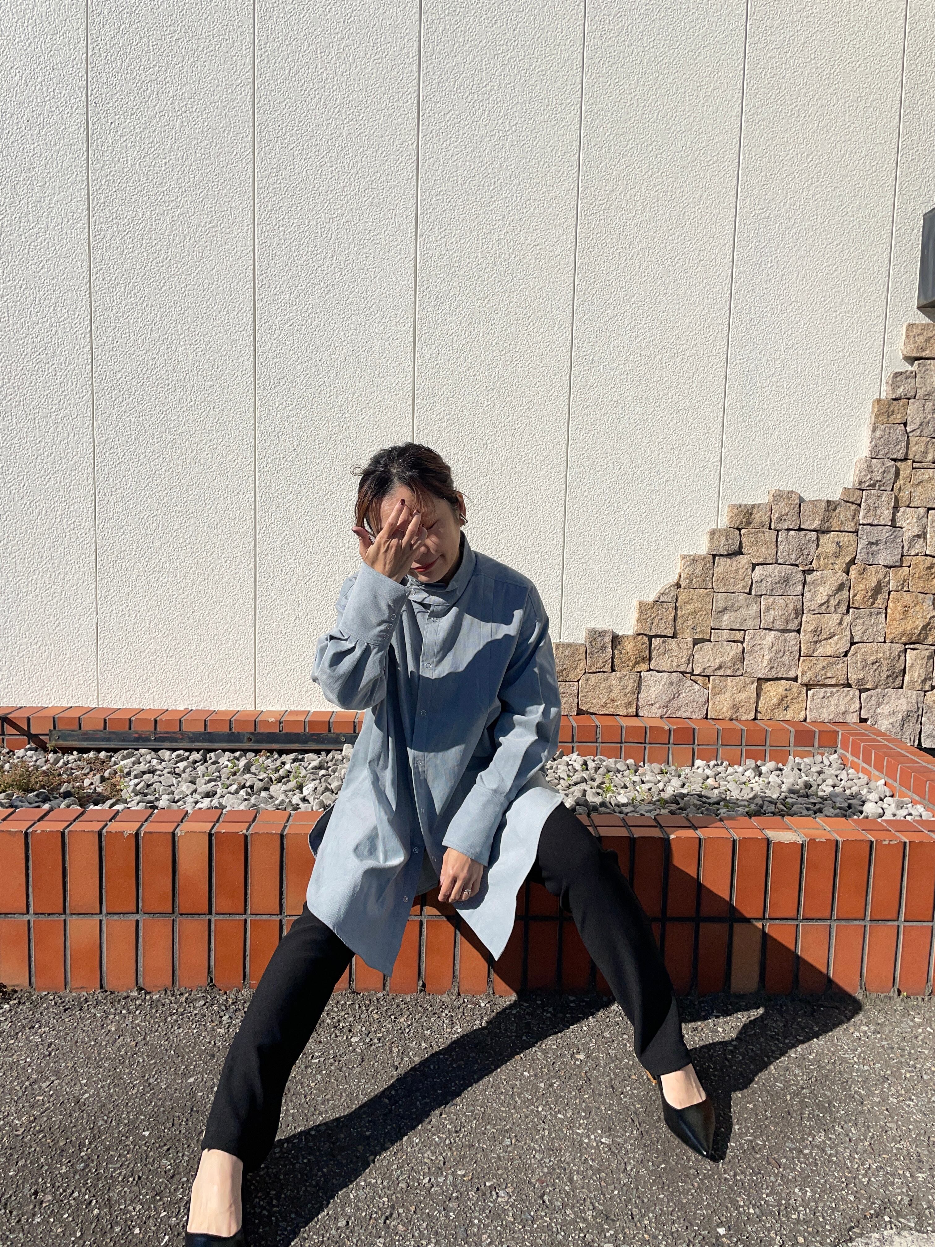 背中の釦を開けてインナーを覗かせるスタイリングもオススメです