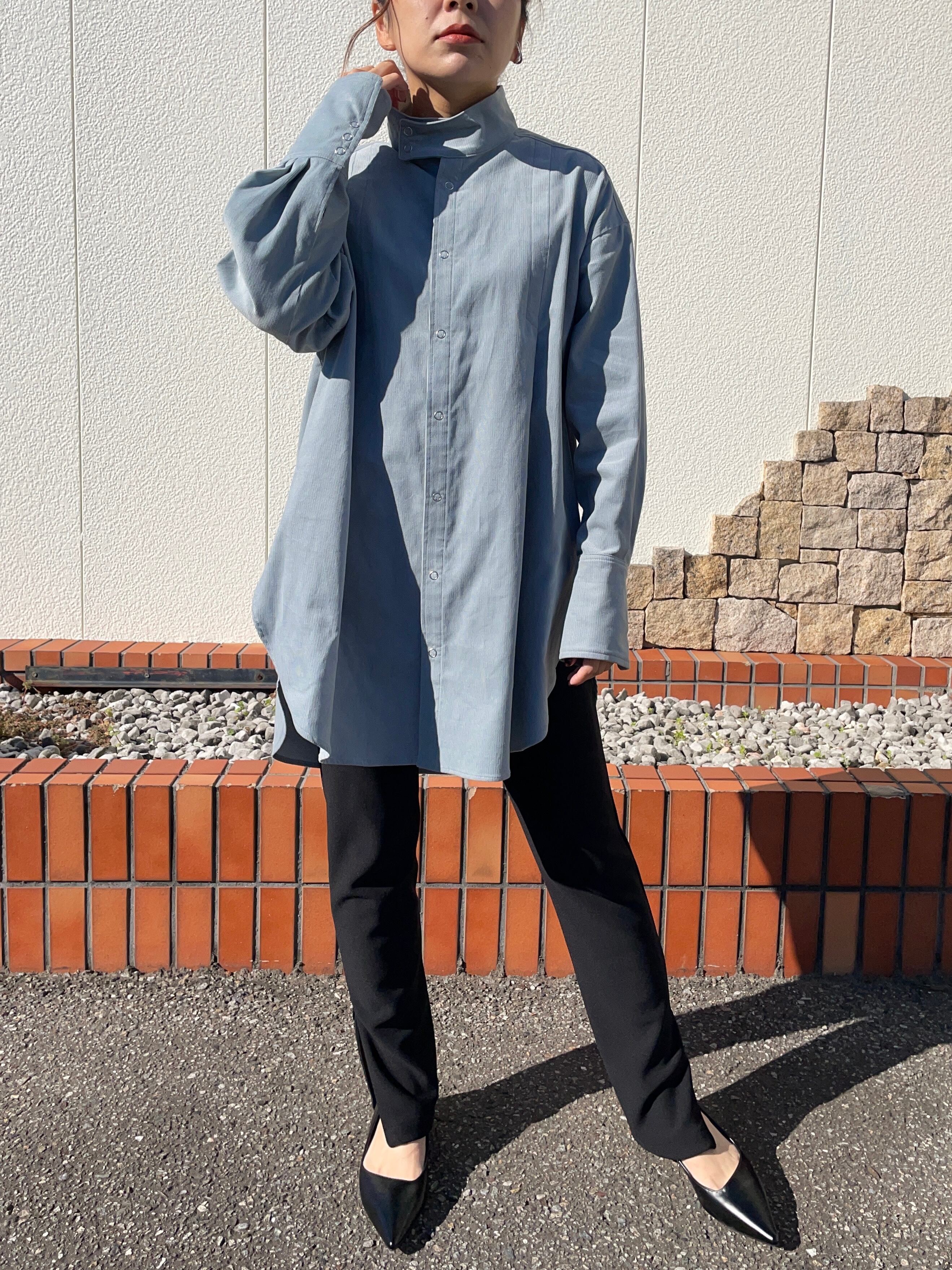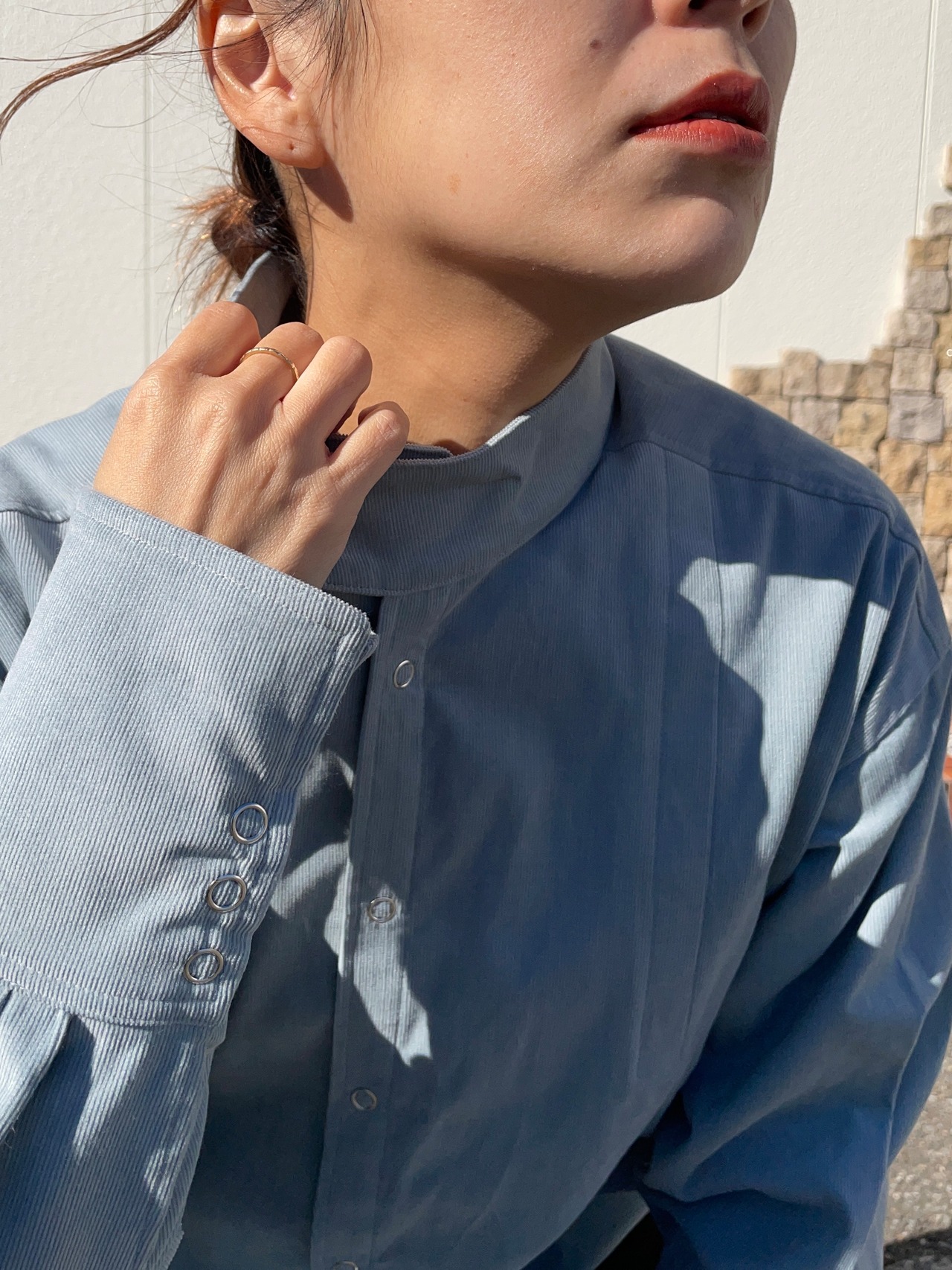 ソフトな肌触りが特徴のコーデュロイを使用したハイネックシャツ。
