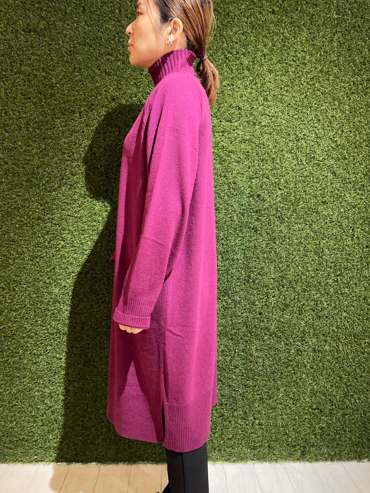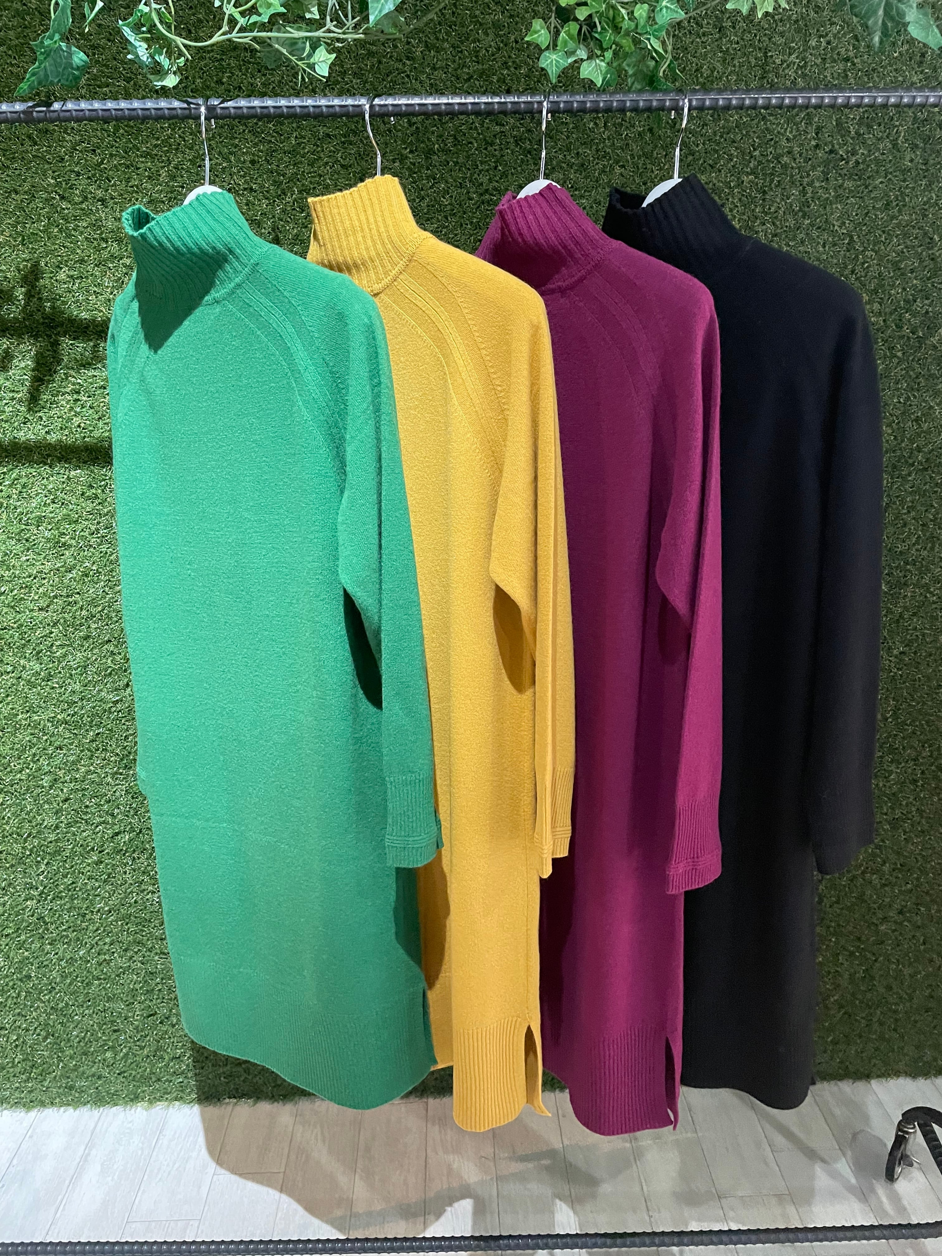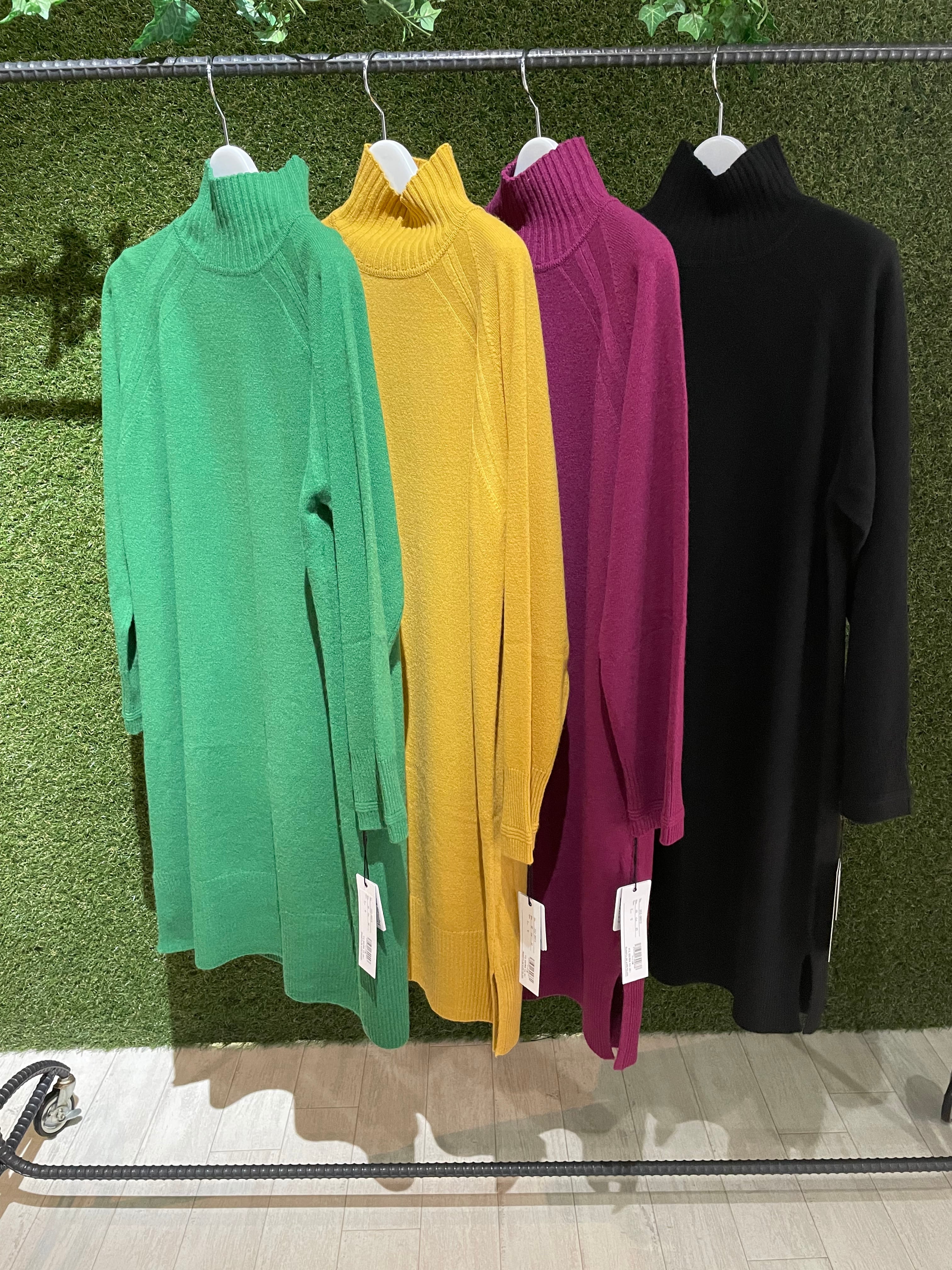 今年らしくキレイなカラーを揃えてのタートルニットワンピース